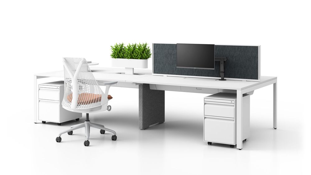 Byne merges the strengths of four classic Herman Miller systems—Imagine, Layout, Optimis, and Arras—plus the heat warmth of the new wood leg Sylvain. Mix and match legs, tops, finishes, and accessories to translate your identity into space.